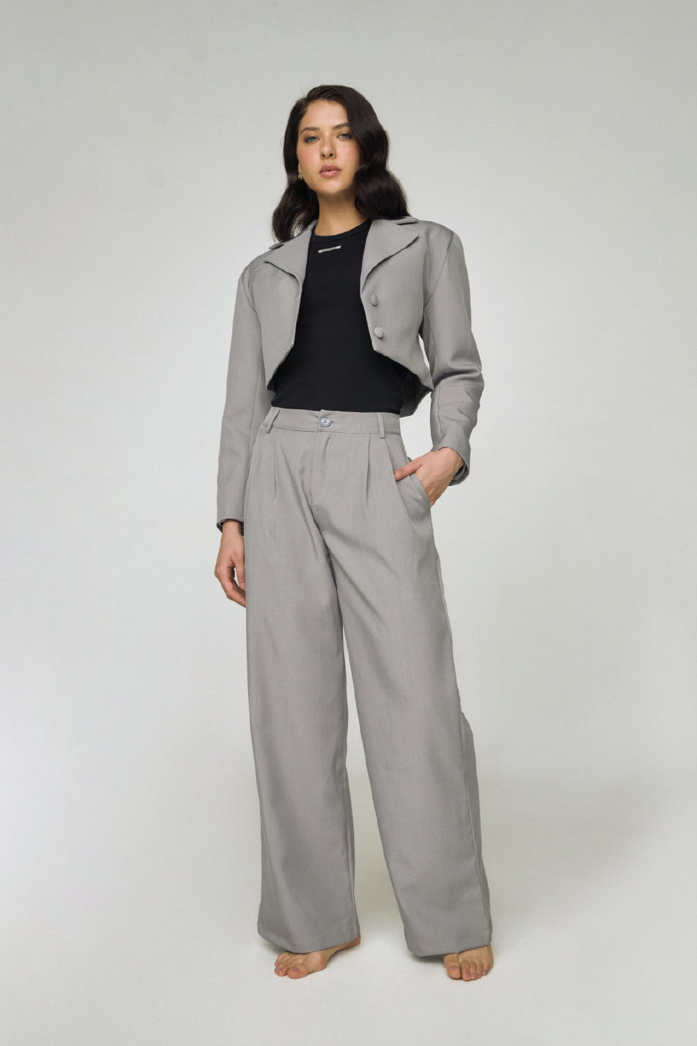 Pantalón elaborado en drill ligero de alta calidad, con un corte amplio y estructura fluida que aporta elegancia y comodidad. Presenta pretina con botón al frente, pinzas que estilizan la silueta y bolsillos laterales funcionales. Su caída suave y textura ligera lo convierten en una prenda versátil, ideal para combinar tanto con piezas formales como con tops casuales.