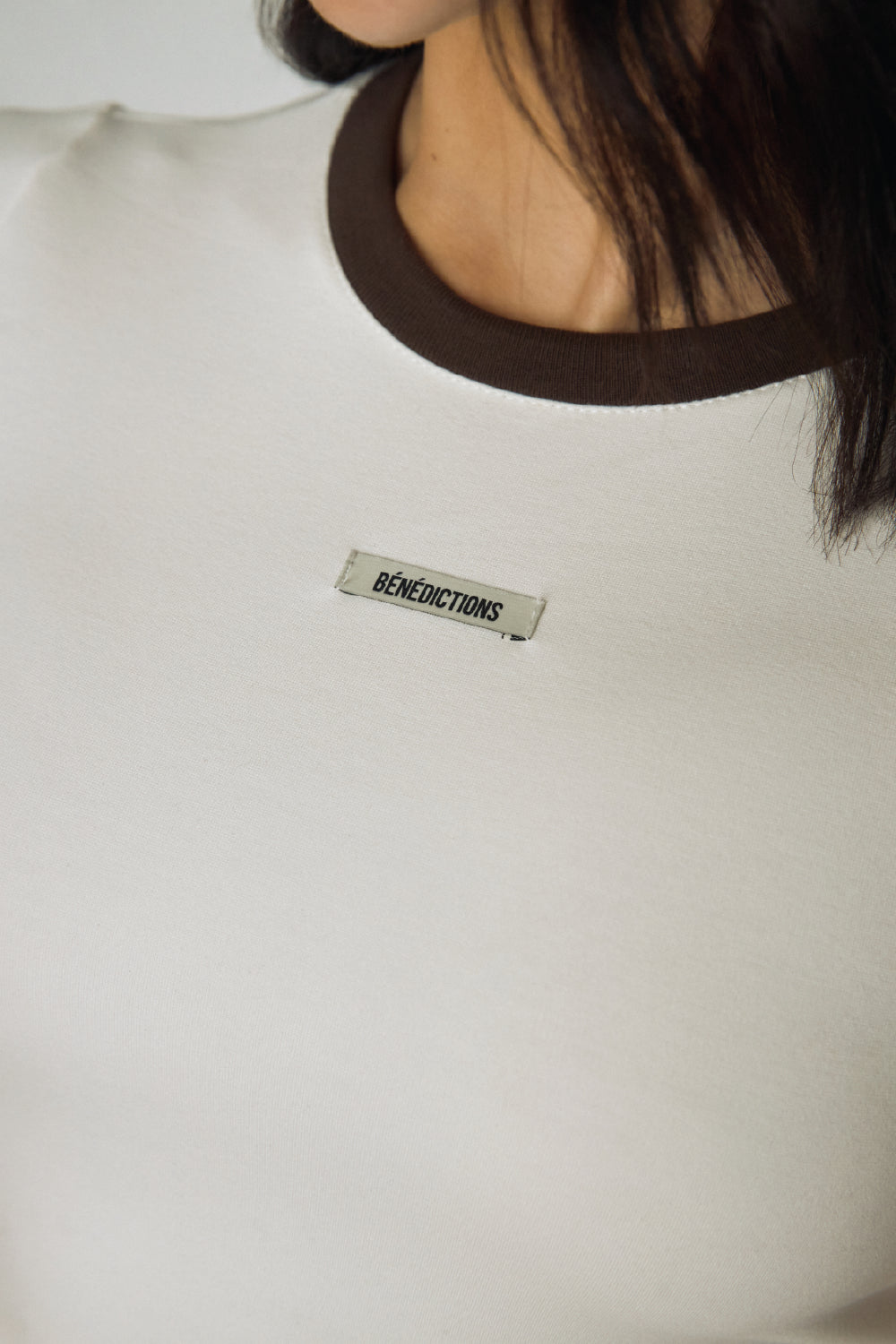 Camisa corta en licra pesada, con banderita delantera con el logo de BÉNÉDICTIONS.