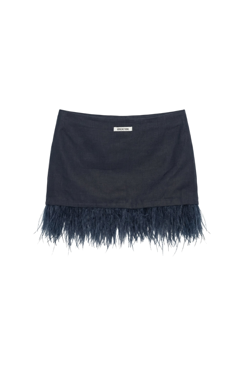 Esta falda elaborada en 100% lino premium combina frescura, movimiento y sofisticación en una sola pieza. Su silueta corta y minimalista resalta la textura natural del lino, mientras que el detalle de plumas tono a tono en el bajo aporta un acabado elegante y moderno que eleva cualquier look.